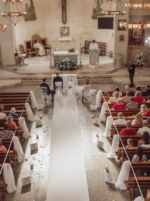 Zajmujemy się kompleksową dekoracją sal weselnych oraz kościołów, dbając o spójność, estetykę i wyjątkowy klimat uroczystości.